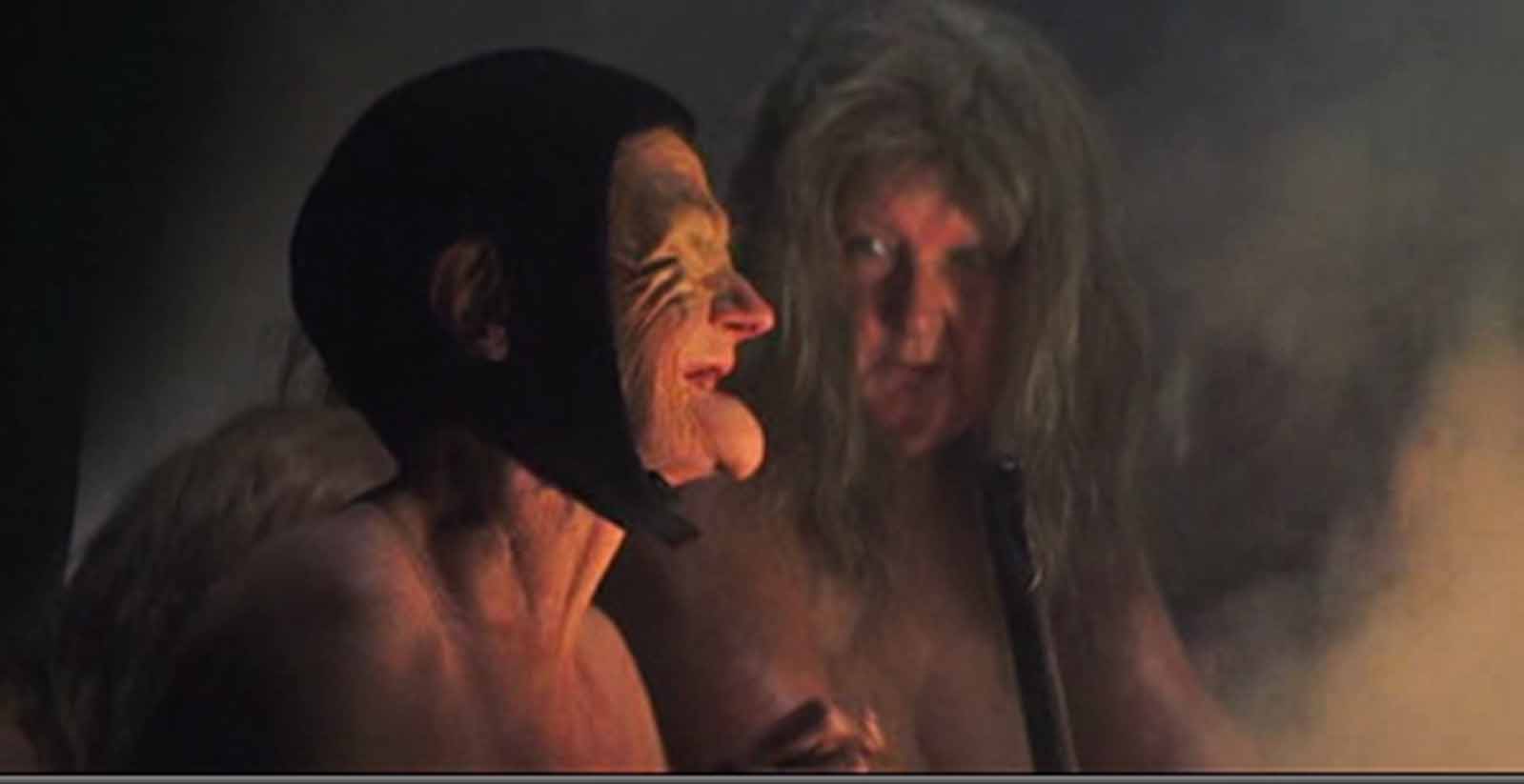 | De zg nornen, oude Angel-Saksische schikgodinnen, beschikken net als de griekse Moirae en de Romeinse Parcae over het lot van de mens. Shakespeare zelf noemde ze 'weird sisters' en zette ze neer als een soort witte wieven, wijze vrouwen met magische krachten - baardig en verwilderd, 'niet van deze aarde', angstaanjagend en letterlijk onheilspellend - fantasie-prikkelend!. Oude tandeloze toverkollen zijn het in de beroemde verfilming van Roman Polanski (1971), maar in een (slechte) versie van de Australiër Geoffey Wright (2006, precies 400 jaar na de première) zijn het satanische schoolmeiden (bitches ipv witches), die MacBeth de voorspellingen doen terwijl ze hem in een orgiastisch drugsritueel uitwonen. Tja... 35 jaar later, andere tijden. Tenslotte, in Rupert Goold's versie (2010) verschijnen ze als koude bloeddorstige verpleegsters, heuse weird sisters die beschikken over leven en dood. | ||